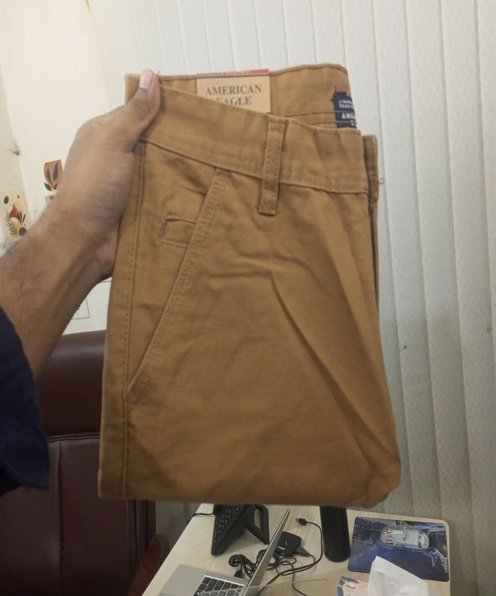 Mustard American Eagle Muster Copy Standard Non Stretchable Gabardine Pant For Men's